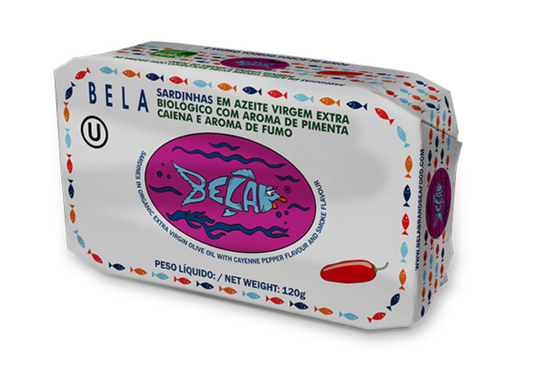 Sardines in Organic Extra Virgin Olive Oil with Cayenne Pepper Aroma and Smoke Aroma